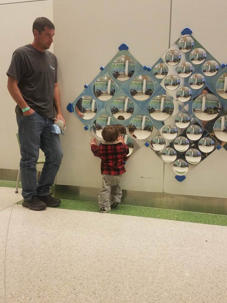 I knew David would be awhile since it was lunch time by the time I was able to let him know we could go home. So we chilled in the room and took a few walks. I ordered Isaiah some lunch and took my leftovers from the supper David brought me the night before to heat up in the little refreshment room. We each ate a little bit and I gathered up our belongings so we’d be ready when David got there.