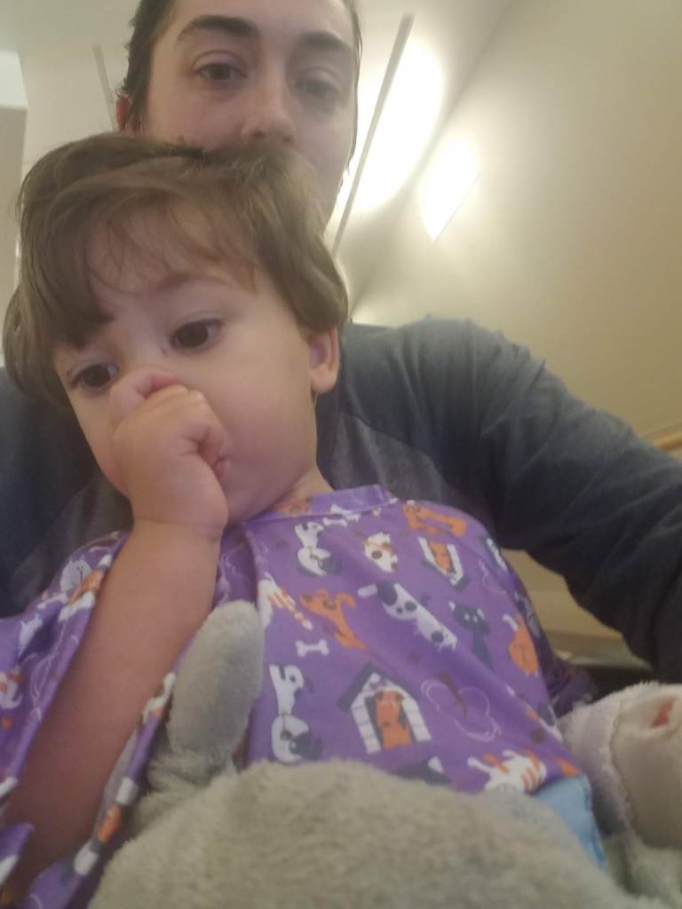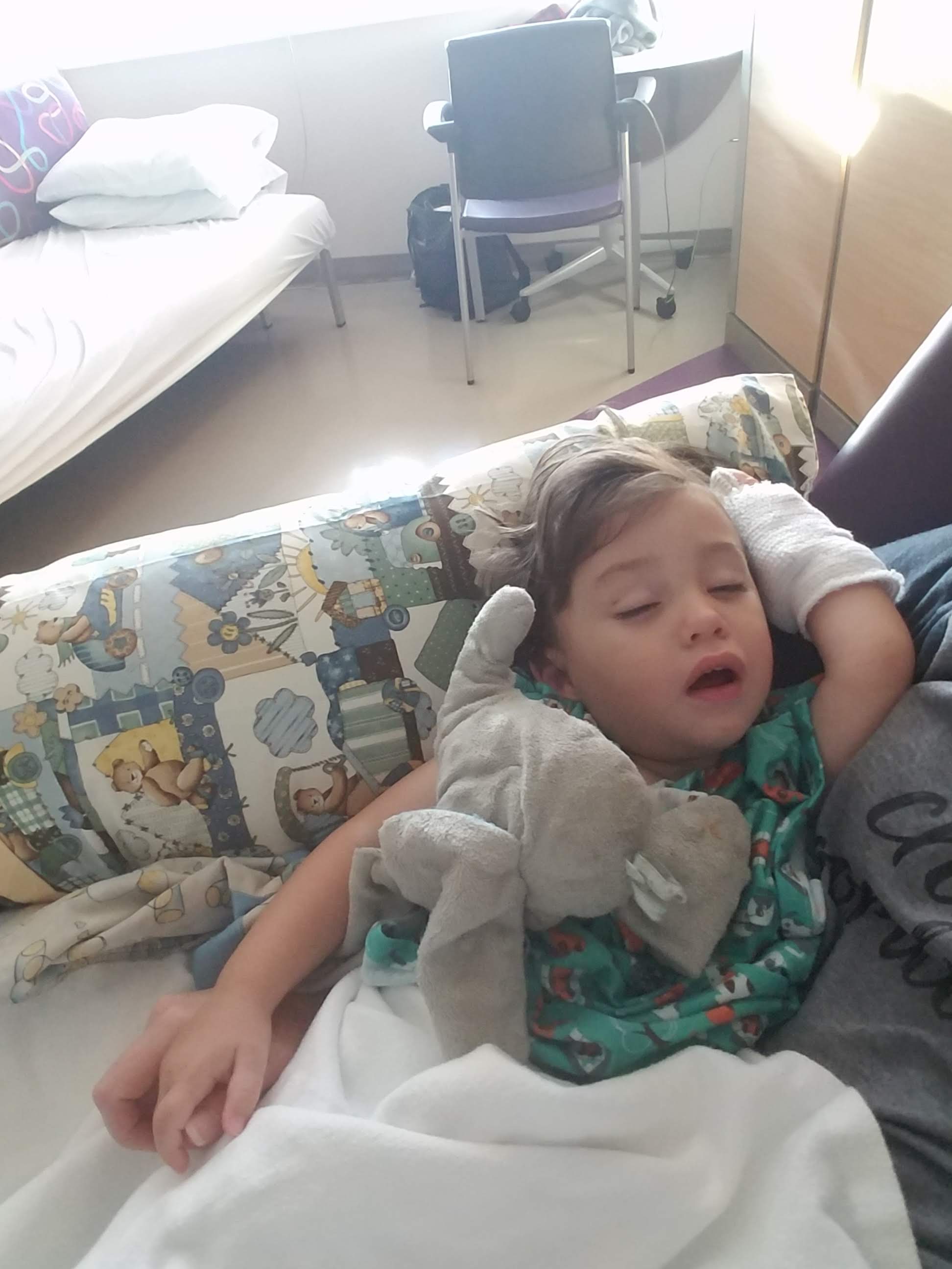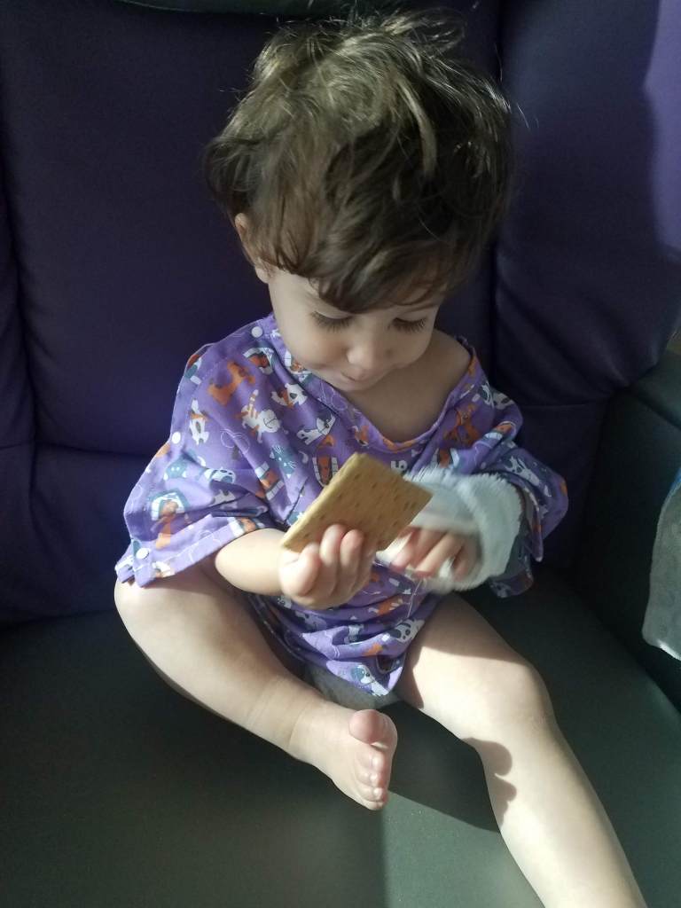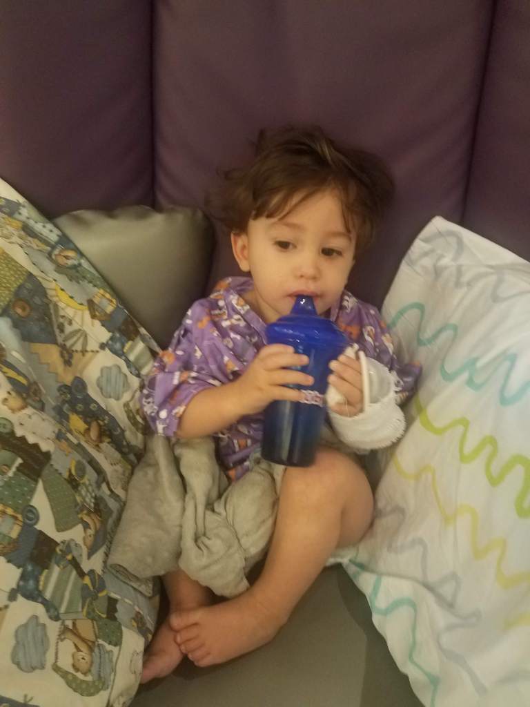 My first instinct as soon as I saw him was to touch him but I was discouraged from that because they wanted him to wake up naturally. Thankfully, after enjoying the meds to their fullest, he woke up without issue. I told the nurse and doctor that he had decided since he didn’t get a decent night of sleep he was going to take full advantage of his sleeping time! Once he was awake and cleared by the anesthesiologist we were transferred back to our room and Isaiah was finally able to get something to eat and drink!